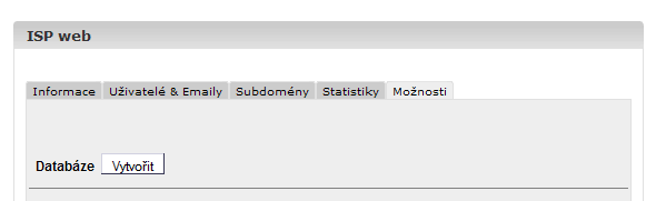 Vytvoření a nastavní databází se provádí v administraci. Po přihlášení klikněte vlevo na web, ke kterému chcete založit MySQL databázi.